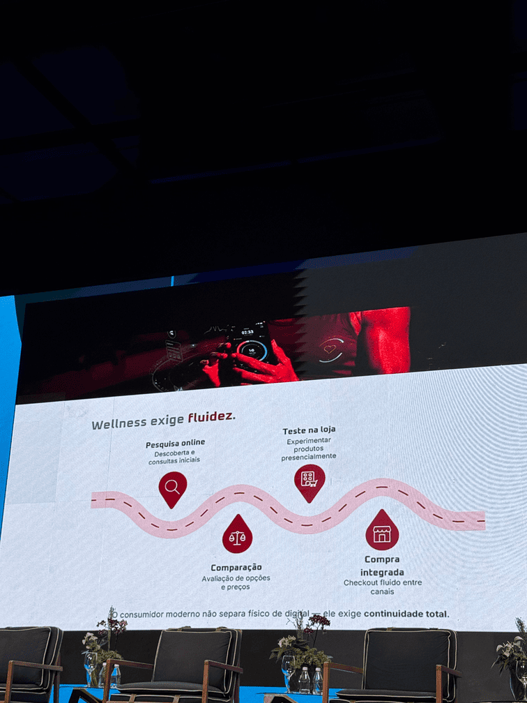 No painel de Wellness, a Centauro destacou como o bem-estar não é mais visto apenas como uma atividade, mas como um estilo de vida. O consumidor quer mais do que produtos; ele deseja uma conexão com a marca, com propósito e valores compartilhados.